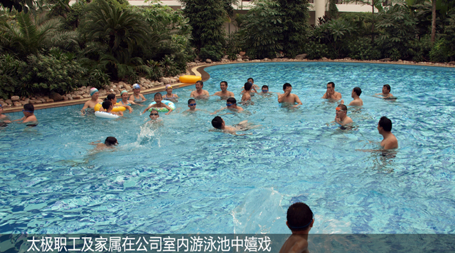 “上班努力工作,下班享受生活”,太極公司非常重視員工生活,視員工為親人,為他們提供一流的工作環(huán)境,高標(biāo)準(zhǔn)的員工餐廳,舒適的公寓,休閑的運(yùn)動場所,讓員工時刻感受到太極大家庭的溫暖。2006年太極公司在緊鄰廠區(qū)另購?fù)恋?0畝,投資8000余萬建成了約6萬平米的職工單身公寓樓,每人50平米房間,統(tǒng)一配置電視、網(wǎng)絡(luò)、洗浴間、床柜、空調(diào)、暖氣、桌椅一應(yīng)俱全。生活區(qū)還配備了3D電影院、超市、兒童樂園、衛(wèi)生所、棋牌室、健身房、乒乓球室、臺球室、羽毛球館、籃球場、露天健身器械等,并不斷舉辦各種文化體育活動豐富職工生活。