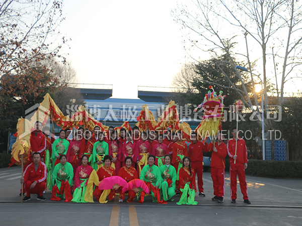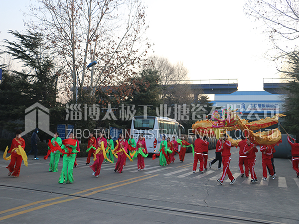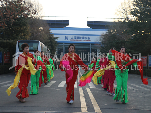 餐后職工及家屬們在生活區(qū)廣場上打起鼓來敲起鑼,舞龍秧歌放煙花。共同祝愿太極搪玻璃設(shè)備公司的明天更加燦爛輝煌。